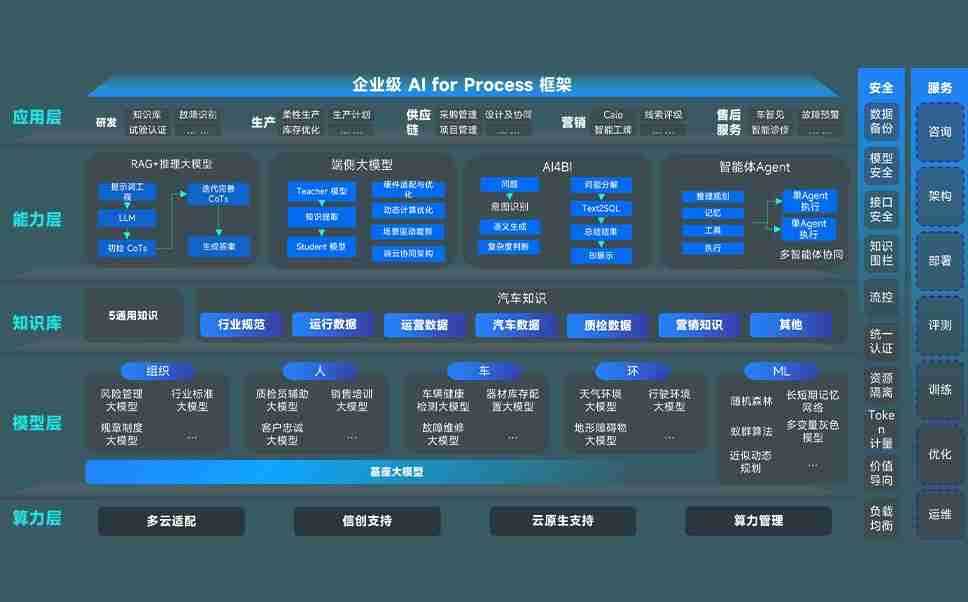 端到端的一站式AI工作空间深度融合了从企业战略规划到日常经营的全流程业务板块,,,定向解决车企内部领域多、、、、部门多、、链条长、、、场景碎片化等难题,,,支持车企快速构建以AI为核心的生产力写作体系,,,,实现任务执行与AI能力的无缝集成与交互